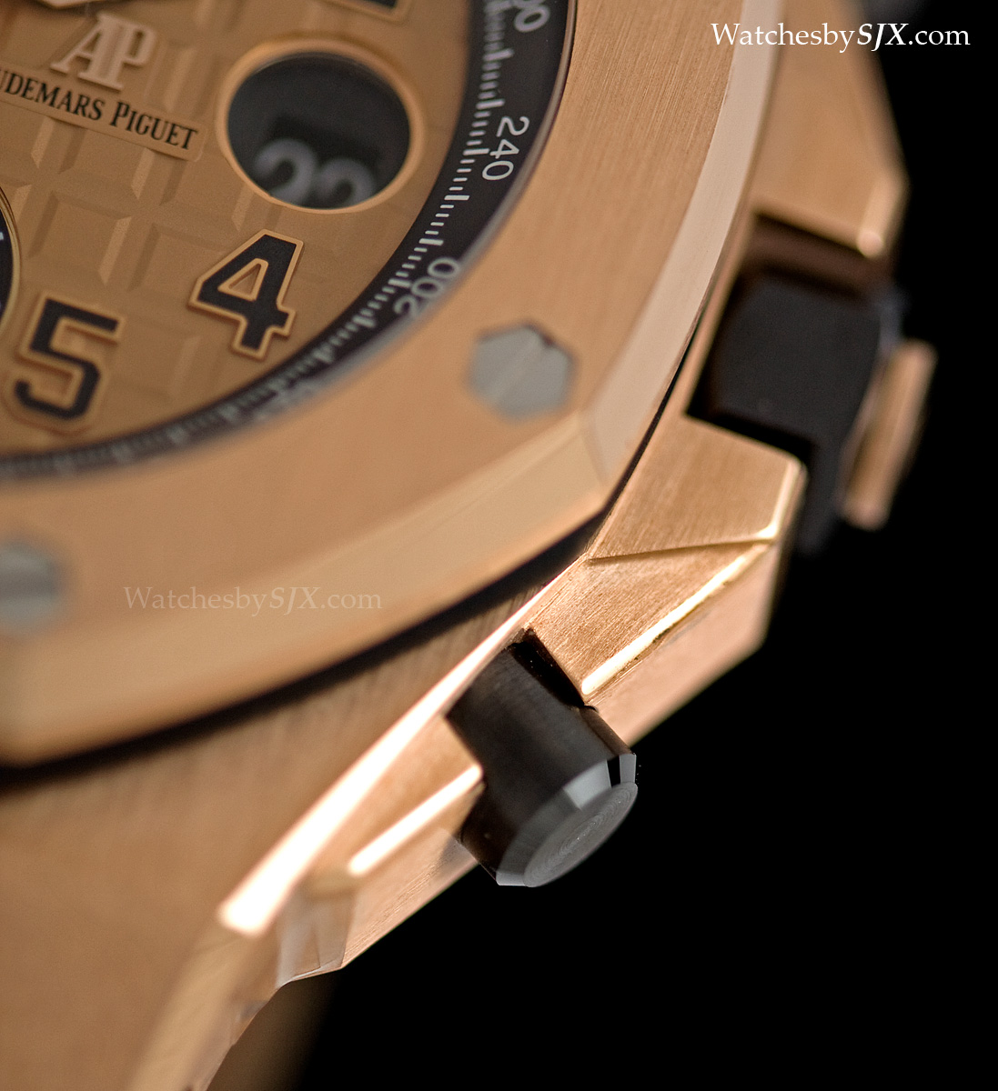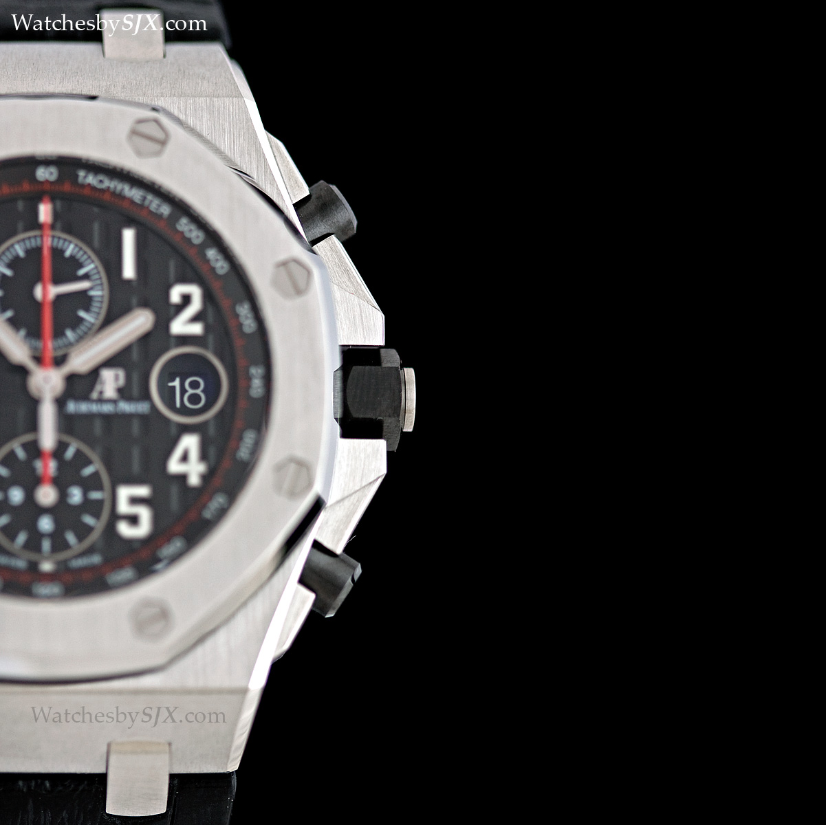 Bien que le nouveau 42 mm Offshore ressemble beaucoup les mêmes, plusieurs caractéristiques importantes ont changé.Les couronnes et poussoirs gardes sont maintenant plus gros et plus angulaire, avec un profil similaire à ceux trouvés dans les Offshore 44 mm.