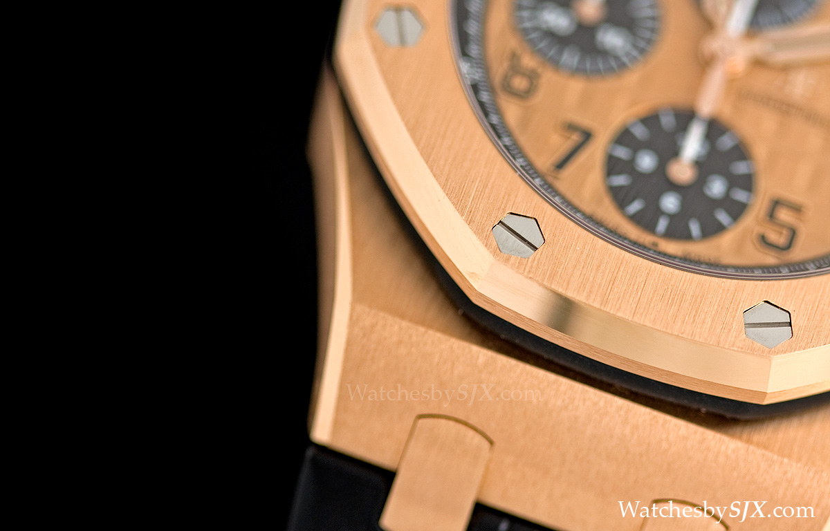 Pour commencer, la nouvelle collection comprend six modèles - deux en or rose et quatre en acier - qui finira par remplacer tous les premiers Offshores génération.L'aspect général reste le même.Les deux surfaces brossées et polies de l'affaire sont exemplaires dans leur finition.Par rapport à la concurrence évidente comme Hublot et Patek Philippe, l'Offshore est encore supérieure dans sa finition de cas.