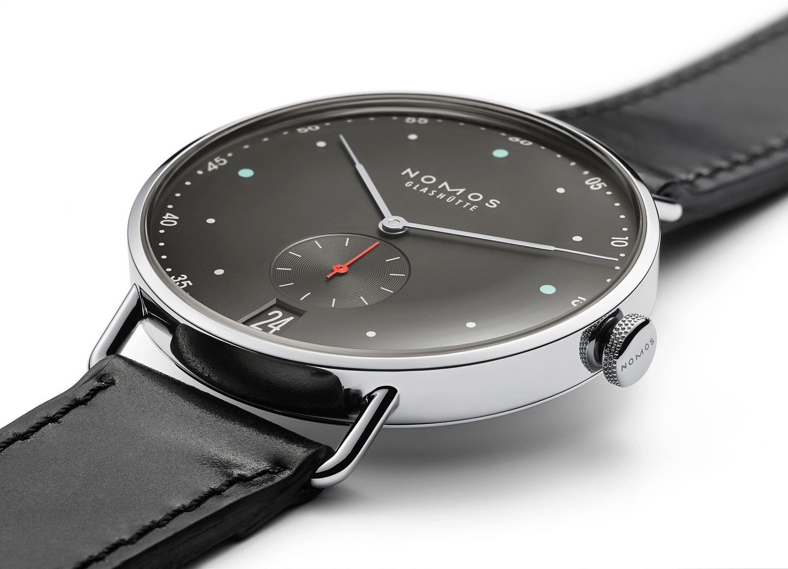 Maintenant disponible dans un plus grand, 38 mm cas, l'alternative d'un cadran noir, la date Nomos Metro est équipé du MPCA 4101, un mouvement exclusif avec un échappement en interne.